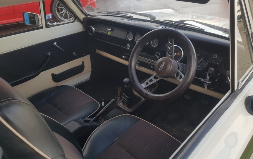 Body - 2 Door Cortina Shell - Good strut tops, inner wings, wings, doors, boot, bonnet quarters. Has had a repair in the boot well previously which really needs redone. Also had a couple of minor repairs underneath but overall a really good strong shell for its age.. Paintwork is OK and perfectly useable but no show winner. Panel gaps are decent. Evidence of a bit of a filler in lower quarters at the rear and on the corner of the passenger side door.