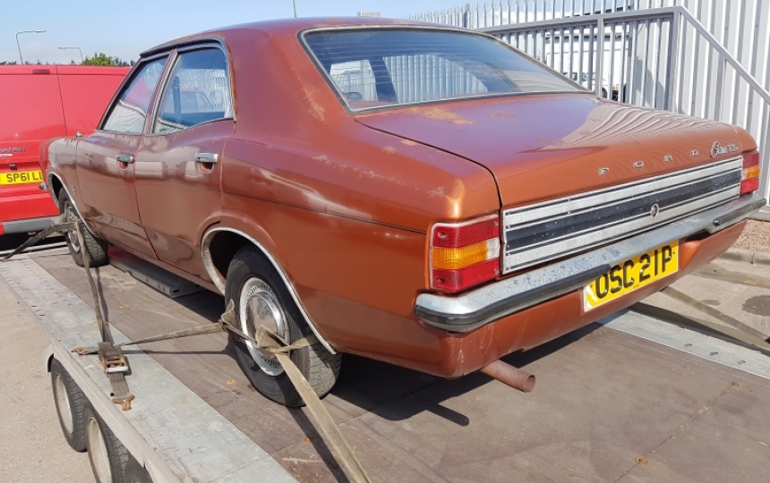 Mk3 Cortina 1.6 XL with only 31000 miles from new. Been in storage for many years . Was first registered in Edinburgh in 1975 by Heron Motor Company. Had very little use and was stored until the original owner passed away. We do not have the V5 as it was lost and will need applied for. The car itself is very good underneath and everything is there but it will need restored.