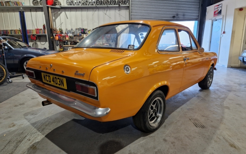 Body - Late Mk1 escort 2 door shell. Good original inner wings, strut tops. floors, sills, arches, pillars. Looks like its only ever had a minor repair in the spare wheel well and at the bottom of the lower front panel. Minor bubbling on wing bottom but overall a very original shell which has not been got at. Paintwork is ok but no show winner. Car started life beige and was changed at some point. Front quarter bumpers fitted, bullet mirrors, original chrome trim round windows. Car has a glass type sunroof fitted