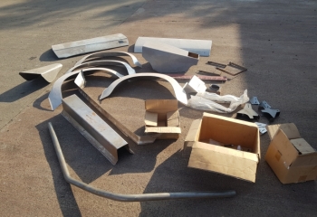 With the shell there is four alloy arches, alloy front spoiler, pair of door skins, gearbox tunnel, diff tunnel, tank platform and straps, bars for weld in cage, panhard rod bracket. Underneath it has a 6 linked 52" atlas axle with watts linkage and new Gaz gold rear coilovers.