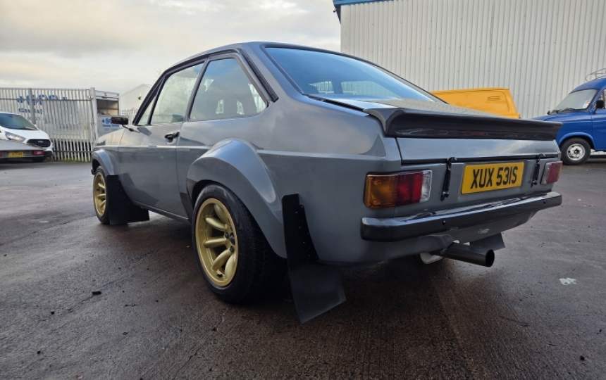 Body - MK2 Escort shell, seam welded, bigger tunnel, gussets, large diff tunnel, exhaust tunnel, turreted and 5 linked. fully painted metallic grey underneath, front arch liners fitted. Wide arches, front spoiler, carbon fibre look bootlid and bonnet, carbon fibre lightweight bumpers. 2 up 2 down spotlights, arch protectors, rally style mud flaps. Body is finished in a grey similar to Nardo grey , Im not sure the exact colour but can probably find out. Stunning looking car and hardly a mark on it. All rubbers etc look like new items.