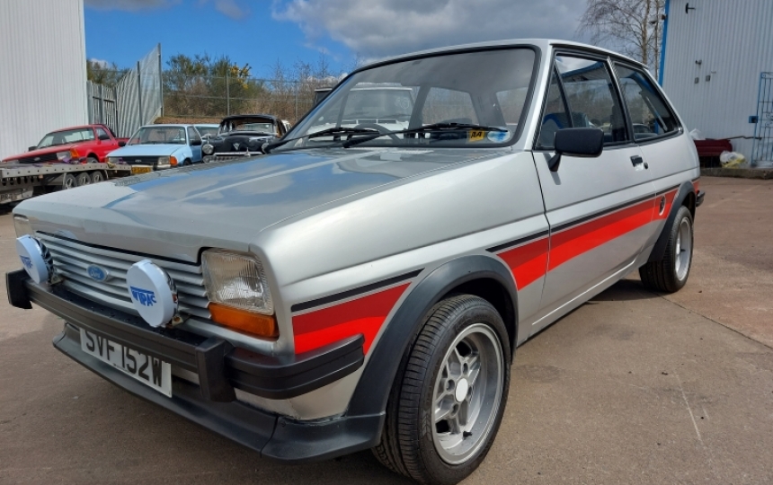 Ford Fiesta MK1 1.1L with a genuine 57000 miles from new. We have the V5 here and every MOt from new. This is a very solid little car and starts runs anddrives well. its MOT till September and can be driven away. Its had Supersport stripes fitted and Laser Alloys.