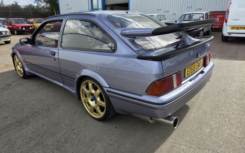 Its a Moonstone Blue 3 door cosworth with all genuine RS500 parts which looks correct being on a E plate. Same owner for the last 16 years wanted for nothing over the years