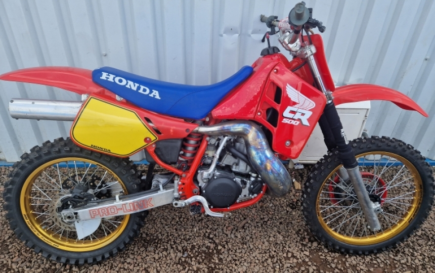 Selling on behalf of a customer this 1988 Honda CR500. Its been part of a collection and unused for some time but was recently sent to his local bike mechanic who has had it up and running and gave it a health check. He says its in good order and has plenty compression. We dont know a huge amount about its history but it doesnt look to have had a hard time. We believe the wheels have been replaced as we are told that the original didnt last very long.