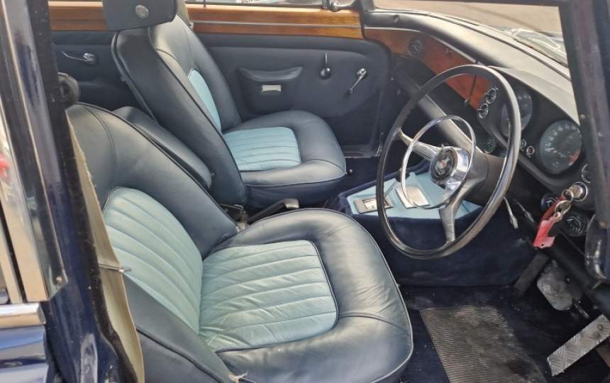 Interior - Seats have been retrimmed in a two tone blue which is not original and might divide the crowd. They are in fairly good order but there is a small tear on drivers bolster. Dashboard is in good order as are the door cards and headlining.