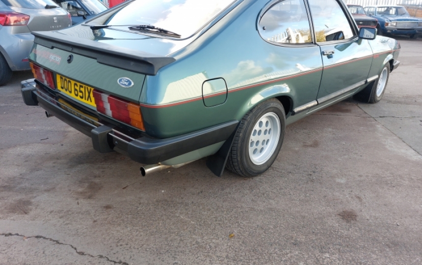 1983 Ford Capri 2.8i. Car has done 127000 miles, has had 15 previous owners. Its now tax and MOT exempt. It starts runs and drives very well. We have the V5 and keys but no real history. Its a good solid useable car with a little bit room for improvement. Quite rare in the two tone green colour combination, which is the cars original colours..