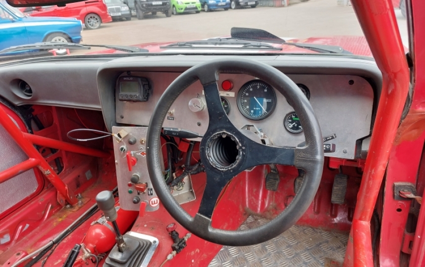 Interior - Race seat and harness. Aluminium door cards, full cage, stack gauges, alloy switch panel. Fire extinguisher
