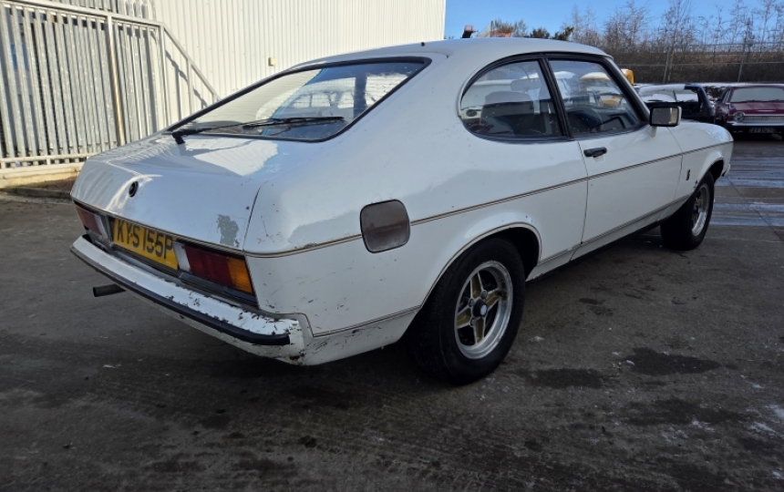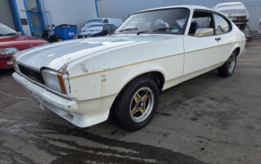 Here we have a genuine 1 owner, zero previous owners on the V5, Capri Mk2 1600 GTS. These were commonly known as a JPS even though thats not what Ford called them. I thought Id get that in there before theres an onslaught of folk dying to correct me. This particular car was bought new from Armour Motors Ford in Giffnock in Glasgow by a gentleman from the Edinburgh area. The car was only used till 1981, covering 53000 miles, when it was garaged for some reason. We have the original V5, a current style V5 and confirmation from the DVLA that they have inspected the car and are happy its genuine. We also have paperwork from Capri Club International confirming the cars identity. It will need a light restoration but its totally complete and can be heard running