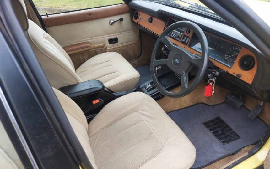 1979 Ford Cortina 3.0 Ghia Automatic. Factory built car from South Africa. All import duties and tax have been paid and the NOVA declaration done. The UK registration will be applied for one behalf of the new owner. Very clean original old car in Mimosa Yellow. Car starts runs and drives.