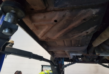 Mechanicals - 1300 crossflow sitting in place. We have not tried to start it as its not wired up etc. 4 speed box. Standard 1300 brakes and diff.