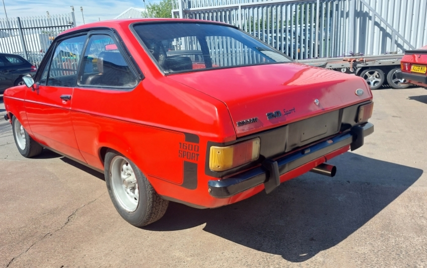 1980 Ford Escort Mk2 1600 Sport. RHD import from South Africa with all tax and duty paid. This car starts runs and drives but it will need restored to a much better standard. We will complete all the UK registration paperwork for the new owner. Its fitted with a 2.0 Pinto with a 5 speed type 9 gearbox.