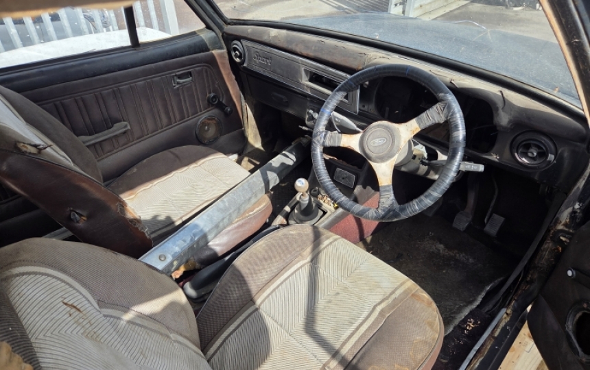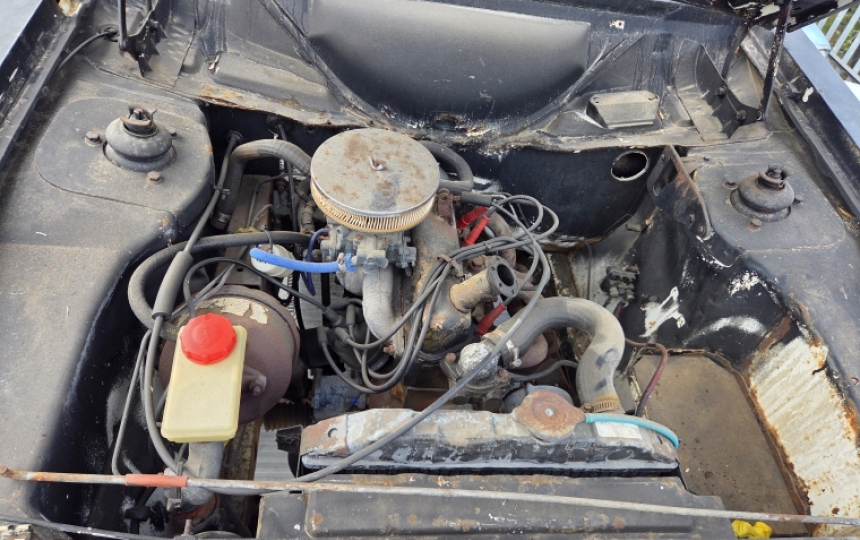 Body - This model has the self air conditioning system with holes in front floors, outer sill to chassis area, rear boot wells and heater bubble. This will ensure anyone stupid enough to get in this car will be kept cool at all times. If it rains however watch for splashback, take a brolly. Its an exquisite shade of matt black. Looks like the product of a 20 box of rattle cans. Good bits, inner wings are original and solid, strut tops are good and are strengthened, centre floor sections are ok, front floors will need a repair. Chassis rails look ok. Rear arches are original and only require repair at the bottoms of the quarters. In all seriousness we have seen a lot worse, but probably not any uglier.