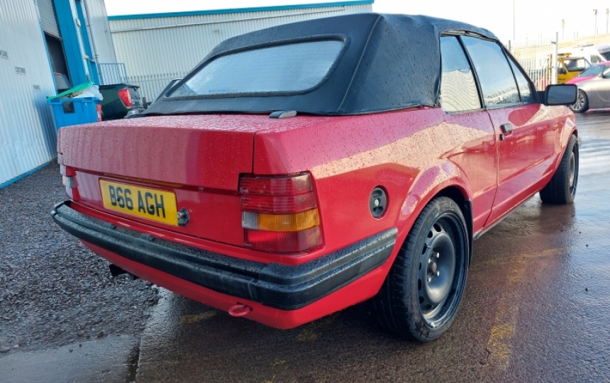 Ford Escort Cabriolet fitted with 1.8 Zetec from a RS1800 Fiesta on Twin 40 Webers. Very solid old car which goes very well. The engine has just been rebuilt at a cost of around £1300. We have the V5 here and will put a years MOT on it for the new owner.