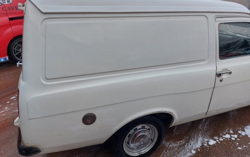 Body - Mk2 Escort Van. Very solid and original and not a patchwork quilt. Only bit we can see thats needing a small repair underneath is front floors. Good doors, arches, sills,rear doors, load area. All panels look original. Front driver side wing has had a minor "ouch" and will need pulled out a bit. Lower front panel could do with replacing as its very misshaped. Paintwork is scruffy and scuffs or scrapes on most panels. Overall though a very solid old original van which has not been got at.