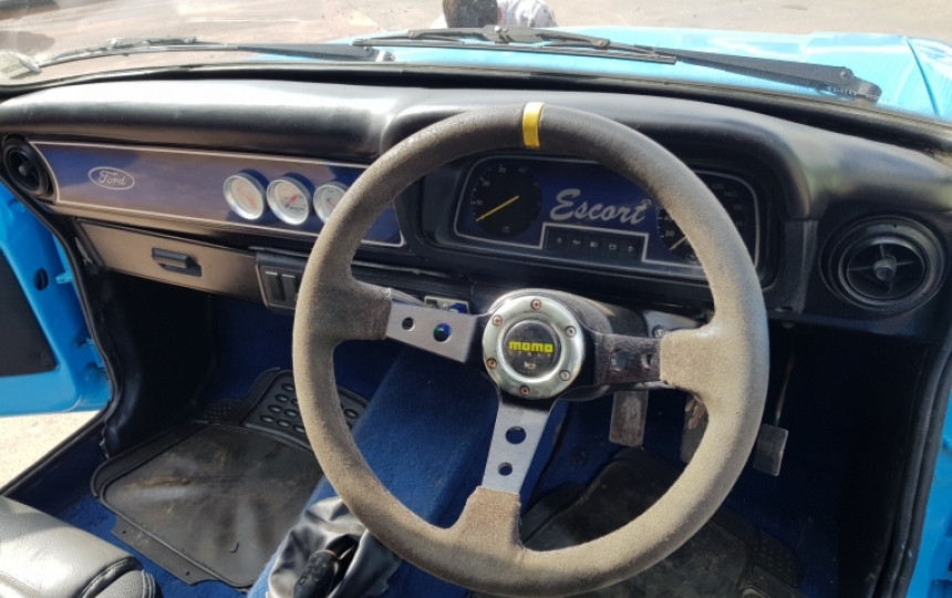 Interior - High back seats not sure what from but quite tidy. Retrimmed doorcards, blue carpet, guages on dash. Momo suede steering wheel.