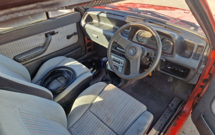 Body - Fiesta XR2 shell with the bump on the rear panel. Solid inner wings, floors, arches. Bit of surface rust and a couple of pin holes under drivers door seal on sill. Cant see it when seal is on but when its off you can. Paintwork is ok and useable but its definitely not a show car. Bumpers are good, spotlights recently replaced with gen ford ones. Twist clips to secure bumper corners missing.Bumper overriders sourced and fitted, rear number plate lights replaced. Complete Ford lock set including doors, boot and ignition locks.