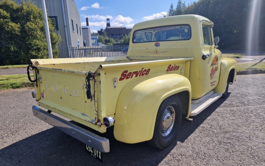 1956 Ford F100 Short Bed Pickup Truck. The owner has been around American cars for a long time and likes his stuff to drive properly. Hes spent a small fortune (dont tell his wife) on upgrading this truck. I drove it the other day and it drives very well for a 50s truck. Its used regularly and is well known around the Scottish Car show scene. Personally, I think he needs a check up from the neck up, for selling it as its so well sorted.....his loss could be your gain. He has the current V5.