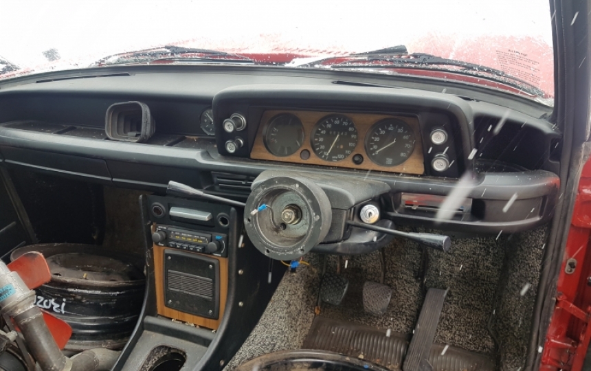 Interior - Original door cards, headlining, dash board. Seats are missing. Car has a webasto sunroof. Steering wheel is missing