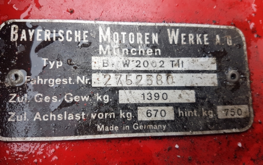 Body - Genuine BMW 2002 Tii. Still has vin tag intact and matching chassis number clearly still on o/s inner wing. Looks fairly solid under the bonnet, in boot and on floors. Will need attention to the bottoms of the wings and bottom of the doors. Car was originally green as can be seen under the bonnet was changed to red at some point in its life.