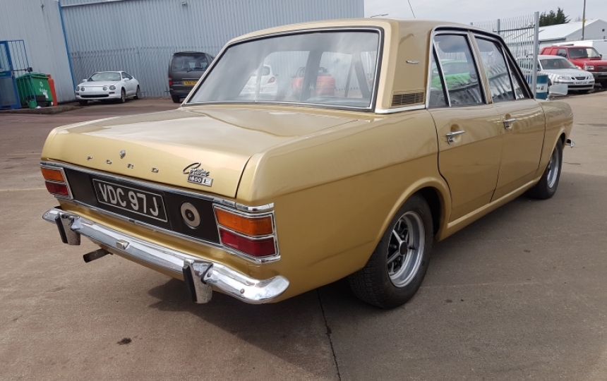 1970 Ford Cortina 1600E in Gold. Car is currently MOTD till September 2018 and can be driven away. Its a good looking car which was restored about 6 or 7 years ago and we would describe as a good useable example but its not a show winner or concours standard.