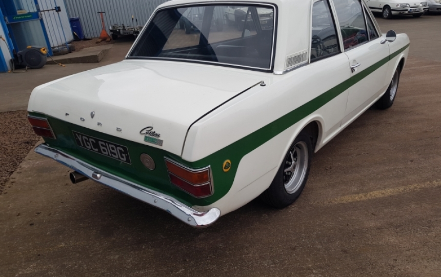 1969 Ford Cortina 1600 GT, Genuine 2 Door GT painted in Lotus Colours. Very very solid shell. Needs a bit work on brakes and steering and paint tidied up in places. Great potential as so solid. Mot and Tax exempt.