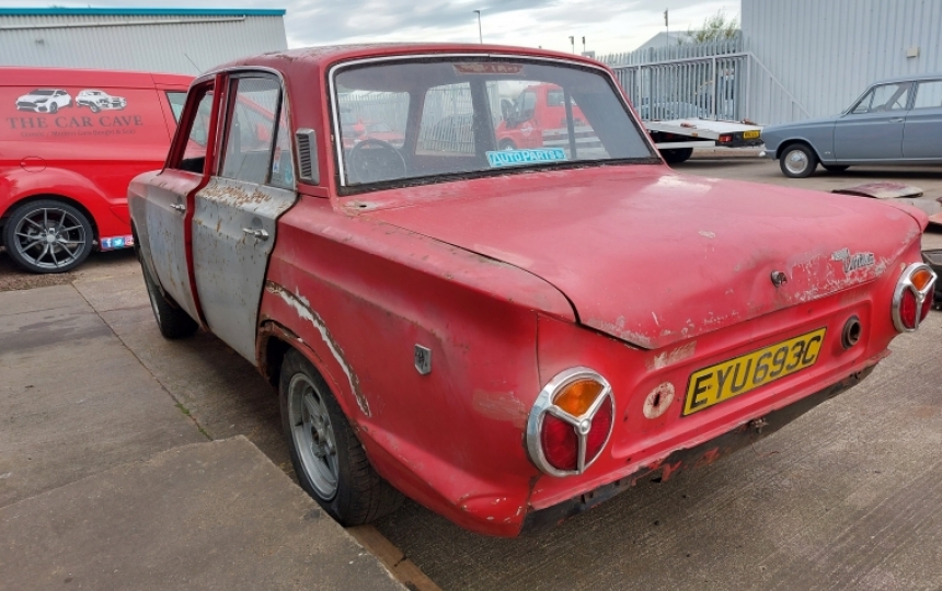 Ford Cortina MK1 GT in need of restoration. Genuine GT with tramp bars extra dials etc. We have the old style V5. Car shows as 2 previous owners since 1980 and looks to have been tucked away for a long time. Car was originally red from the factory