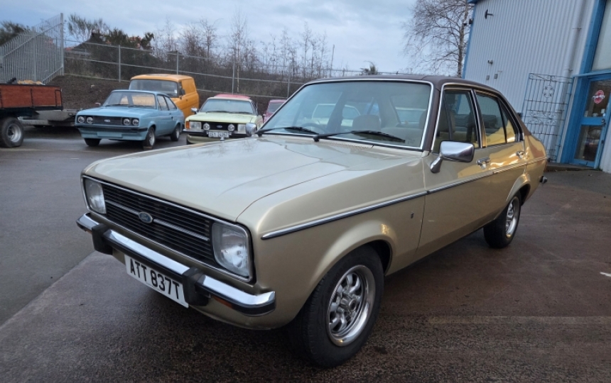 1978 Ford Escort MK2 1.3 Ghia. First Registered by The Godfrey Motor co Ltd in Cardiff. The first lady owner kept this car until 2004. It had a further 3 owners up until 2014 when the last owner got it. He has cared for it for 12 years and the car is a superb example. Its finished in Oyster Gold metallic, comes with a comprehensive history folder, detailing all owners, old MOTs, service receipts and so on. This has been very well looked after over the years. It appears to have been Ziebarted from new