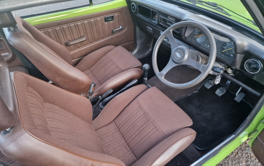 Interior - Still has the base model door cards, which are in good order, but seats have been upgraded to fishnets and treated to a set of Aldridge covers. It has had the clock and pod added at a later date as well. It has no centre console. Very tidy inside.